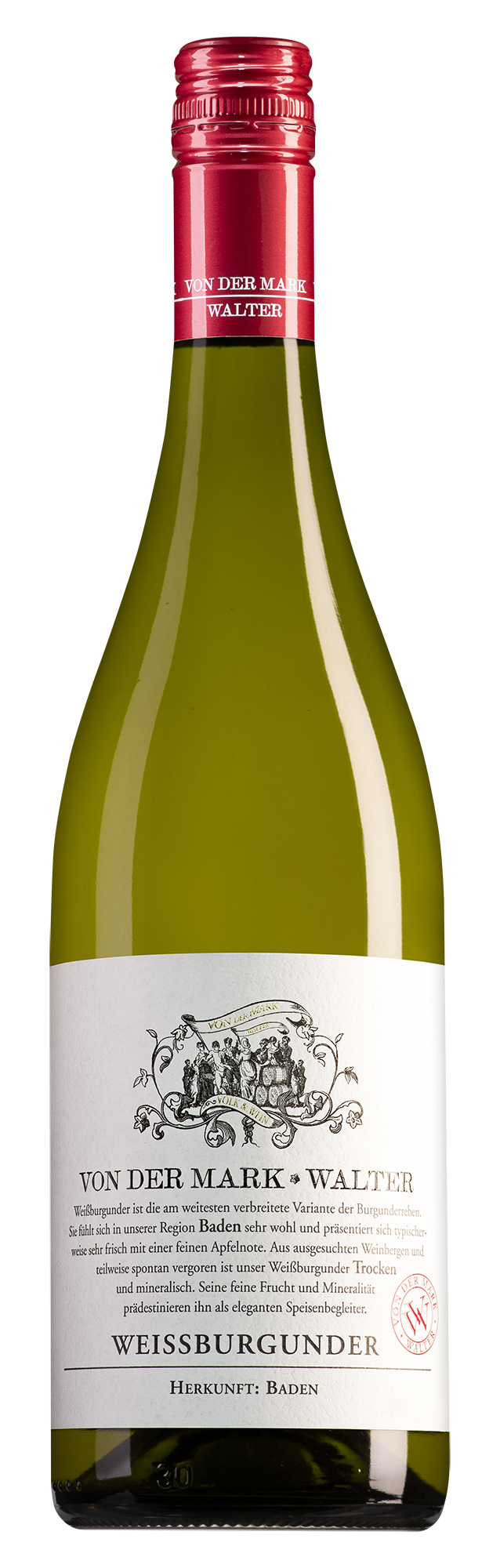 Jürgen von der Mark, een markante wijnmaker en de eerste Duitse Master of Wine, weet als geen ander hoe hij de kracht van Burgunderdruiven kan benutten. Zijn passie voor de Burgundersorten komt tot uiting in deze prachtige Weissburgunder uit het zuiden van Baden, vlakbij de Bourgogne.